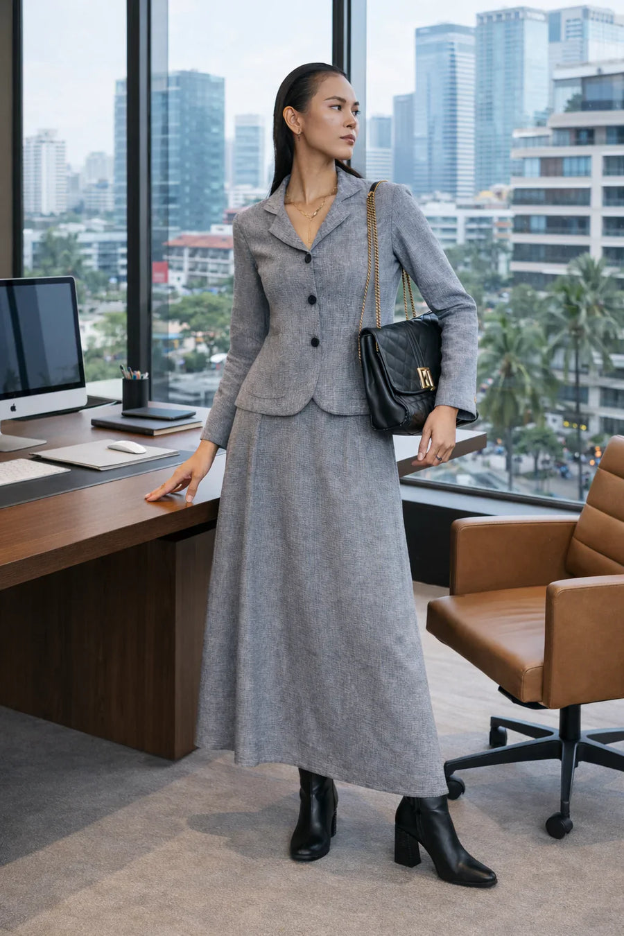 Dove Grey Mangalgiri Cotton Solid Skirt & Jacket Set | Box Pleat | For Women