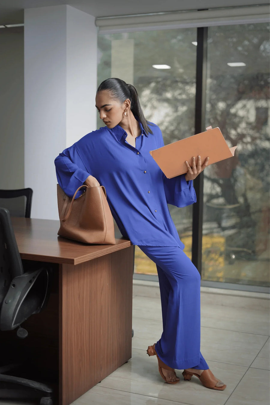 Dodger Blue Lawn Solid Oversized Shirt | Casual Fit | For Women