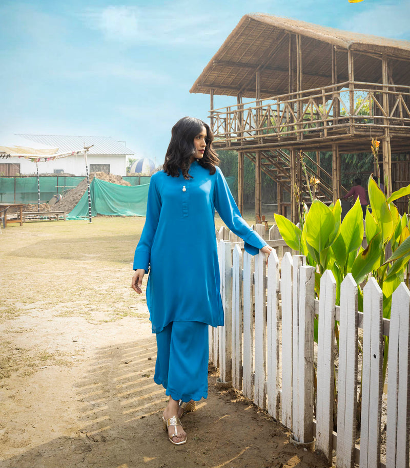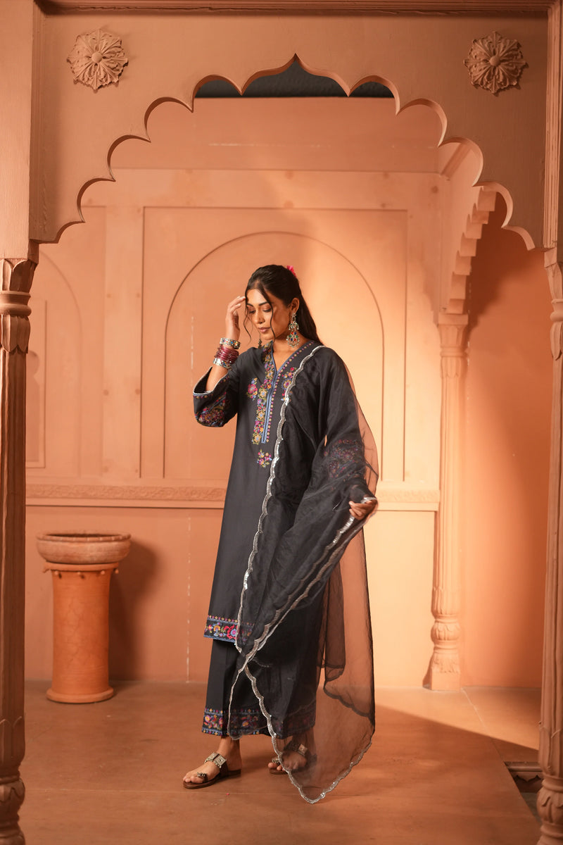 Navy Blue Chikankari Kurta Pant Set | Intricate Work | For Women