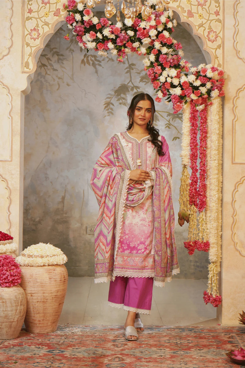 Ash Grey Lawn Printed Suit Set | Classic | For Women