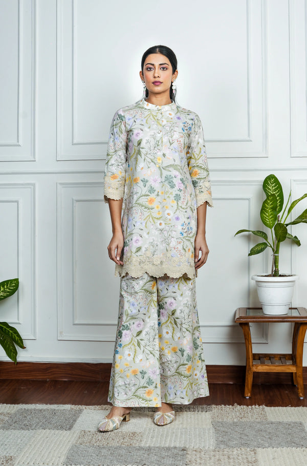 Mint Green Printed Lawn Pakistani Co-ord Set with Coordinated Top Pants Mahira