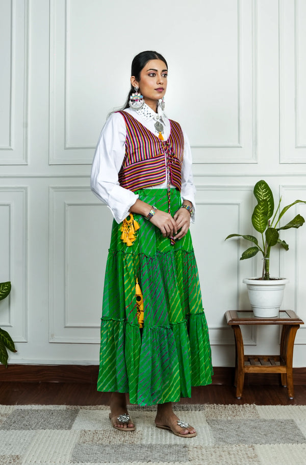 Green Jute & Cotton Solid Skirt Set | Contrast Skirt | For Women