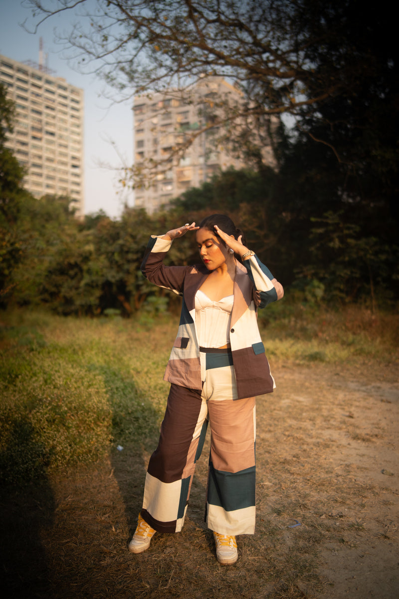 Beige Striped Cotton Striped Kurta Set | Embroidered Patch | For Women