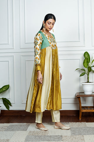 Mustered Yellow Gajji Silk Embroidered Sharara Set with Elasticated Waist Pant and Dupatta