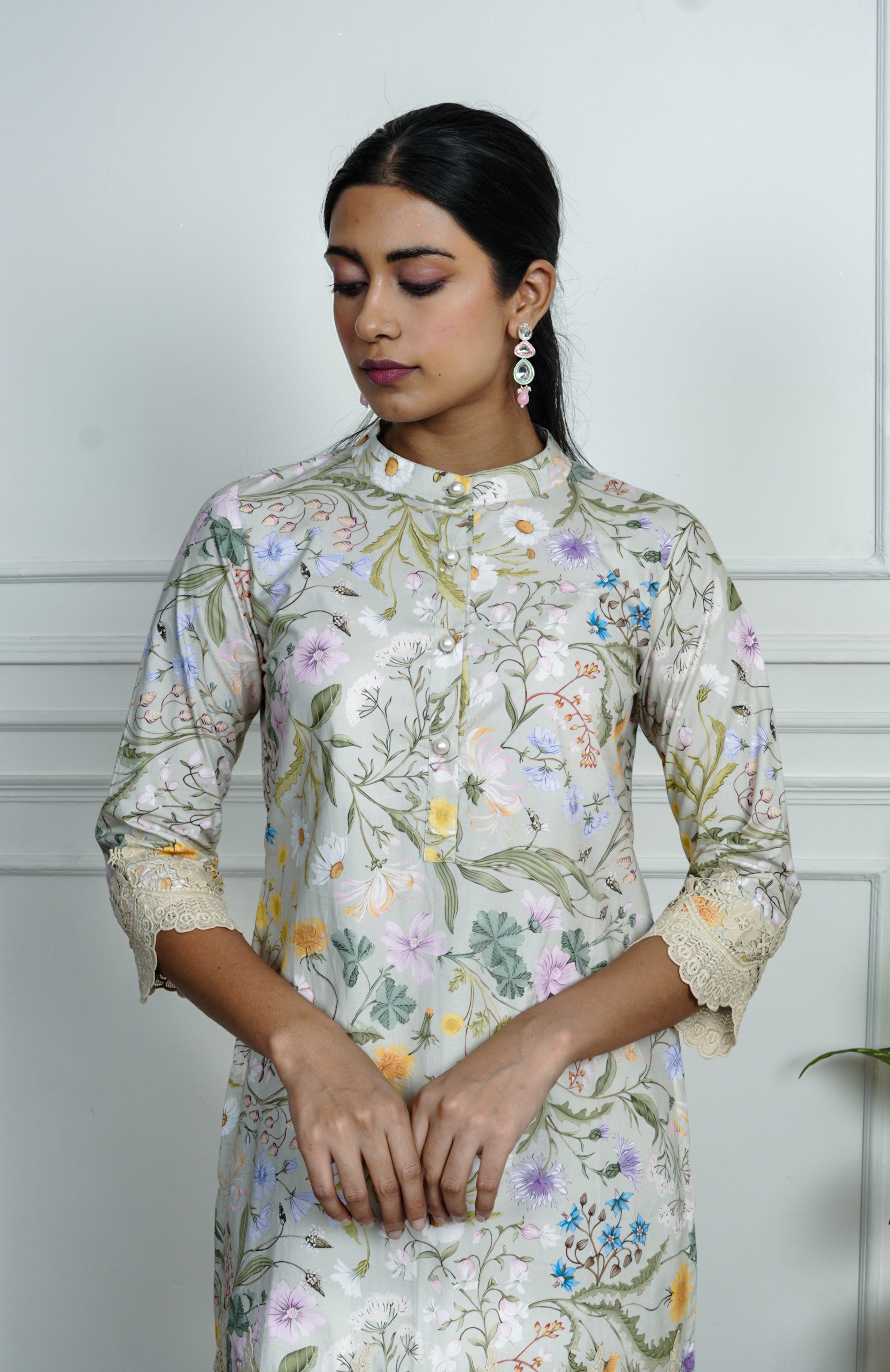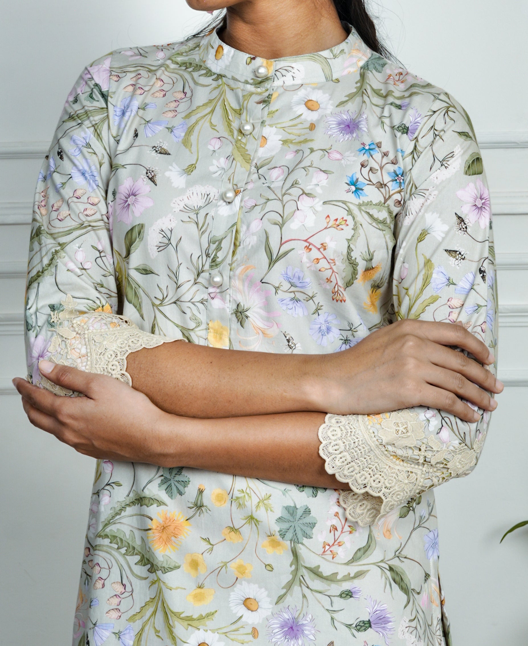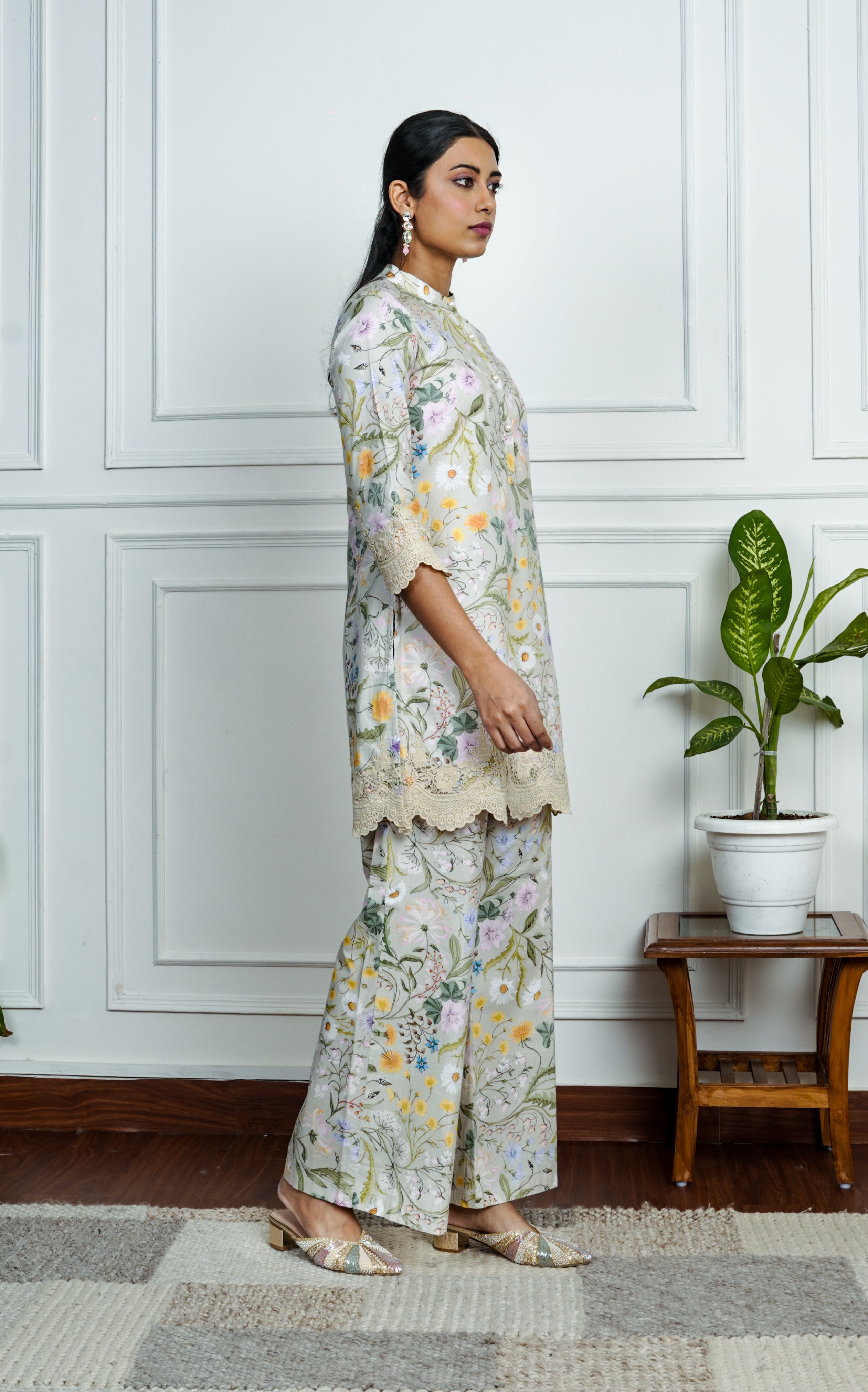This breezy pista green co-ord set is all about summer ease and charm. The floral print, relaxed silhouette, and light fabric make it ideal for brunches or casual festivities.