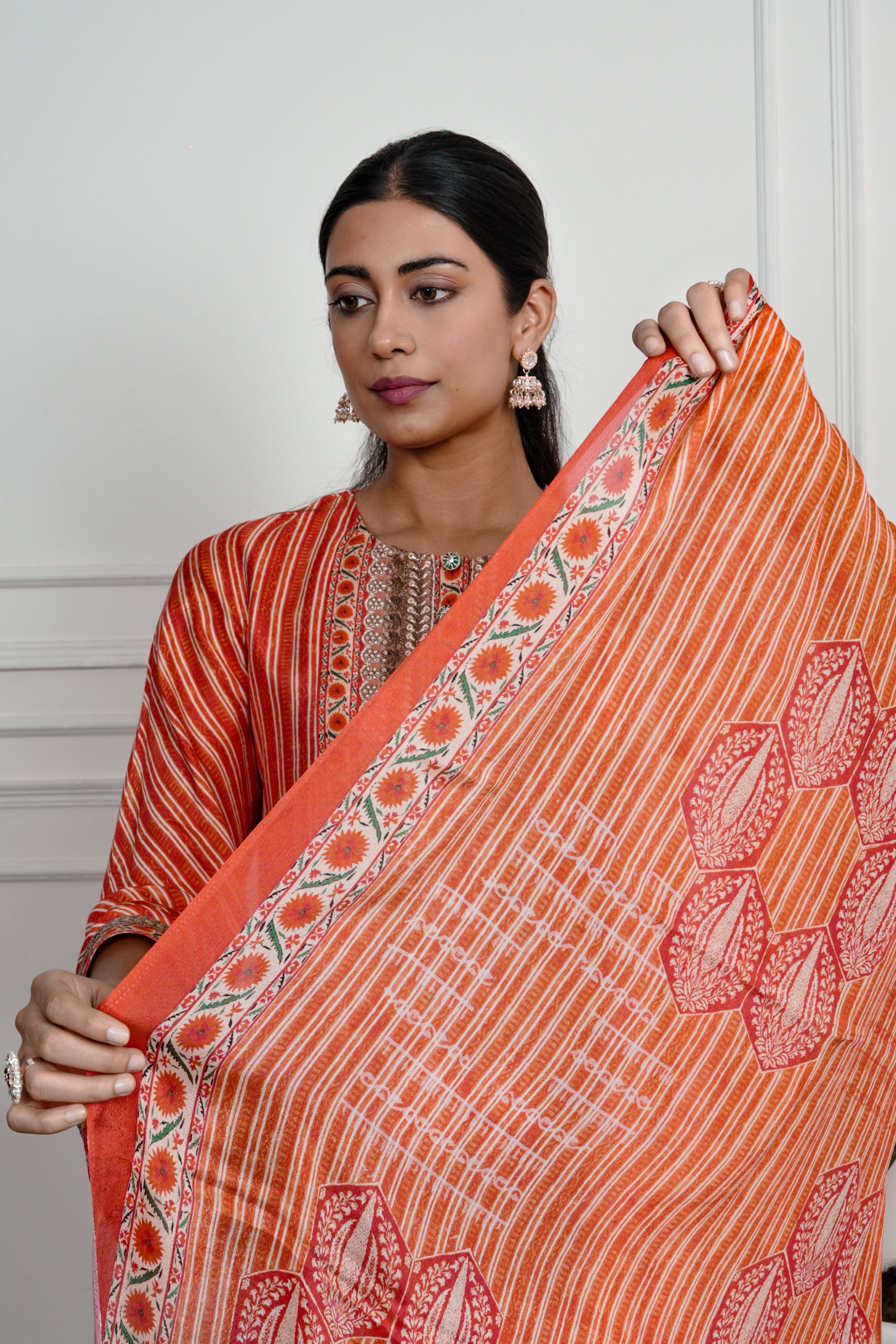 Pair with embroidered juttis and silver danglers. A center-parted bun or wavy hair will add just the right touch. Great for pre-festive events, office celebrations, or casual gatherings with a desi twist.